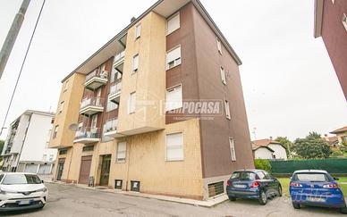 TRILOCALE CON CANTINA E BOX A Vaprio d'Adda, in strada a fondo chiuso, proponiamo in vendita un trilocale disposto tutto su unico livello, sito al primo piano, L'appartamento gode di tripla esposizione (est-ovest-sud) ed è composto da ingresso, soggiorno, cucinotto, corridoio, due ampie camere da letto e bagno. Completano la soluzione un balcone con accesso dal soggiorno, una cantina ed un box. La soluzione è rifinita con pavimentazione in ceramica, marmo e parquet, porta blindata ed infissi in pvc doppio vetro sostituiti nel 2017. Ideale per chi desidera un appartamento sito in zona comoda con mezzi e servizi e completa di box e cantina. LIBERA SUBITO!