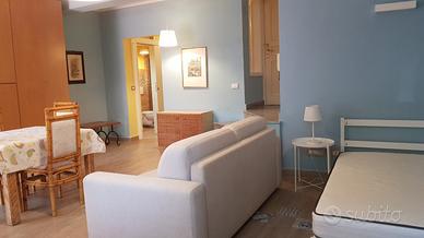 Appartamentino uso transitorio 45mq ideale per singolo/a arredato e con suppellettili, bagno, climatizzato, zanzariere, letto 1 piazza e mezza e materasso nuovi, cucinotto ikea con piano induzione, macchina caffè espresso, friggitrice ad aria, divano letto. È compreso nel canone l'uso lavanderia in zona giardino, no spese condominiali, possibilità posto auto in giardino, in prossimità dei servizi e della circonvallazione per varie direzioni, locasi