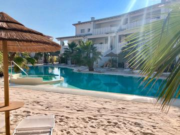 In posizione invidiabile a nemmeno 350 metri dal mare, appartamento al piano primo in residence con piscina dalla forme architettoniche armoniose e affascinanti.