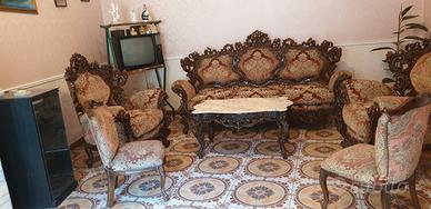 Al piano terra (mq. 110) troviamo un ingresso, 2 grandi vani distinti, una cameretta, un bagno e la cucina. All'esterno un cortile con aiuole ed un garage di mq. 44.