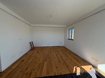ingresso su ampio e luminoso soggiorno con angolo cottura, disimpegno e corridoio, due camere da letto matrimoniali con accesso diretto a un secondo terrazzo, doppi servizi entrambi finestrati, dotati di grandi box doccia e raffinate finiture in marmo azzurro.