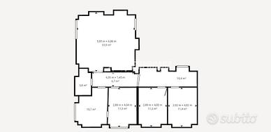 Al suo interno è così composto: doppio ingresso, cinque camere e un bagno.