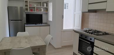 Fittasi a professionisti referenziati fino al 31 Maggio 2026 appartamento ammobiliato di 60 mq. da poco ristrutturato, al primo piano di un piccolo condominio, costituito da camera da letto matrimoniale, bagno con doccia e bidet, cucina accessoriata con frigorifero, piano cottura e forno, ampio salone con TV e divano, due balconi di cui uno interno, riscaldamento autonomo ed aria condizionata, lavatrice. Prezzo di locazione Euro 600,00 al mese escluso le utenze.