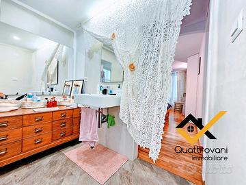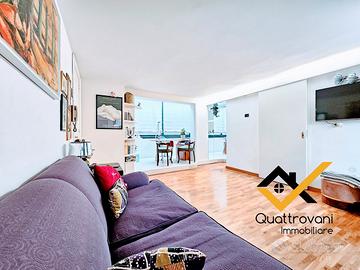 ingresso su open-space di 30 Mq circa, cucina a Vista, esclusivo angolo studio con libreria, camera da letto arricchita da piccola cabina armadio, bagno comodo con vasca, angolo lavanderia con 2° servizio.