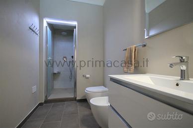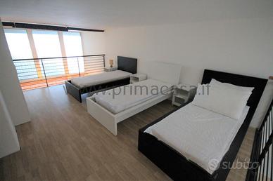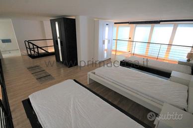 Al secondo livello, al quale si accede da una comoda scala dal sapore industrial, troviamo un soppalco completamente aperto, che si presta ad una libera interpretazione degli spazi e che è direttamente collegato ad una ampia zona che può essere utilizzata come cabina armadio con saletta di servizio separata.