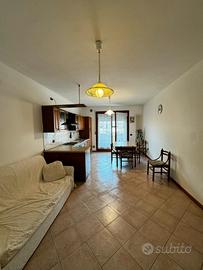 Loria (TV) frazione Ramon, vendesi appartamento bicamere al piano primo così composto: cucina e soggiorno open-space, camera matrimoniale, camera singola, bagno, lavanderia, disimpegno, terrazzo e garage al piano S.1.