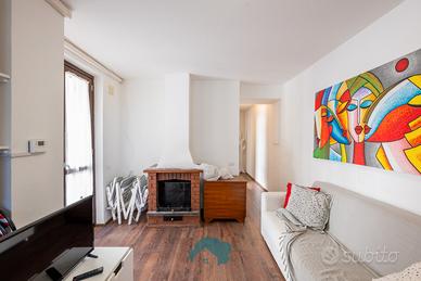 L'immobile è così suddiviso: salone con camino ed uscita sul terrazzino, angolo cottura, disimpegno, camera da letto matrimoniale, cameretta con uscita sul terrazzino e bagno.