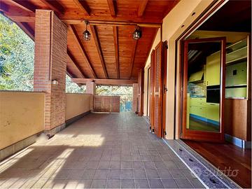Gli ambienti interni si distinguono per una zona living ampia e luminosa, con cucina a vista che si apre su un terrazzo coperto, perfetto per piacevoli momenti conviviali all'aperto.