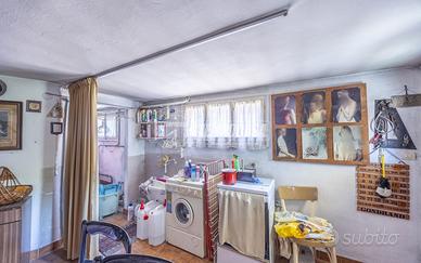 Scendendo di qualche gradino troviamo un bagno, un ampio magazzino e l' accesso al garage.