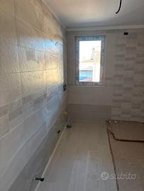 La pavimentazione in piastrelle è presente sia nella zona giorno che nella zona notte, mentre i bagni sono dotati di sanitari sospesi, lavabo a colonna e piatto doccia da 80x80 cm. Le soglie delle finestre sono in granito, aggiungendo un tocco di pregio alle finiture.