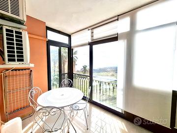 --ampio balcone verandato per intero con affaccio su verde condominiale e vista mare.