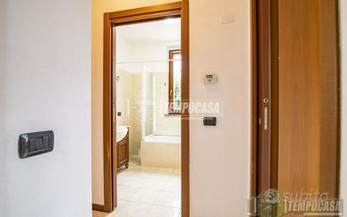 Un comodo disimpegno conduce alla zona notte composta da due camere da letto, di cui una con cabina armadio, e da un servizio finestrato con vasca.
