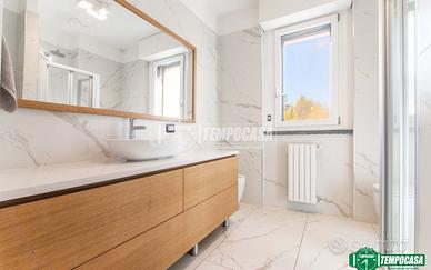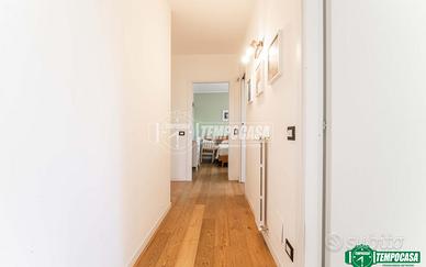 Proponiamo in vendita un moderno appartamento di quattro locali recentemente ristrutturato, situato in un piccolo contesto residenziale anch'esso ristrutturato e ben curato. L'immobile gode di doppia esposizione Sud-Ovest, che garantisce luminosità costante per buona parte della giornata, valorizzando gli ambienti e creando un'atmosfera calda e accogliente. Superato l'ingresso, troviamo il luminoso soggiorno con cucina a vista e il primo balcone esposto ad Ovest con affaccio sul verde circostante. Il disimpegno conduce alla zona notte dove troviamo: la prima camera matrimoniale con cabina armadio, bagno privato e il secondo balcone, la seconda camera matrimoniale, la camera singola ad oggi utilizzata come studio e il bagno padronale finestrato. L'appartamento è dotato di pavimenti in parquet e gres porcellanato, serramenti nuovi con taglio termico, caldaia a condensazione e aria condizionata. Completano la soluzione due pertinenze che ne aumentano il valore: una cantina e un posto auto coperto di proprietà, dotato di colonnina per ricarica auto elettrica. La classe energetica "B" attesta un'elevata efficienza dell'edificio e degli impianti, con consumi contenuti e comfort quotidiano garantito. L'immobile rappresenta un'opportunità perfetta per chi cerca una casa "chiavi in mano", moderna, efficiente, in grado di soddisfare le esigenze di una famiglia o di professionisti che preferiscono uno stile di vita contemporaneo. Vantaggi principali: Esposizione Sud-Ovest - ambienti luminosi e soleggiati. Classe energetica B - risparmio energetico e comfort. Ristrutturazione completa "chiavi in mano". Cantina privata + posto auto coperto con colonnina ricarica. Contesto residenziale moderno e curato senza barriere architettoniche. Contattaci al per maggiori informazioni o per fissare un appuntamento di visio - Classe: B - IPE: 64.34 kWh/mq anno