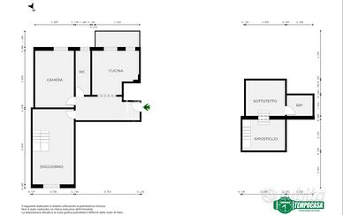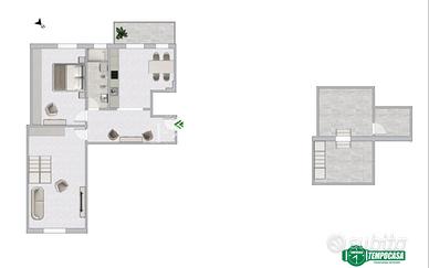 INTERNO: L'immobile è composto da ingresso su disimpegno con ampio soggiorno e cucina abitabile, una camera da letto matrimoniale e bagno finestrato. Dal soggiorno, una comoda scala conduce a una seconda camera da letto e a una lavanderia.