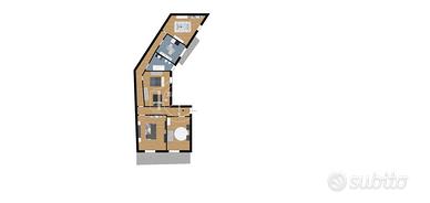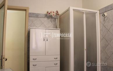 Il bagno, finestrato e ben distribuito, è completo di vasca, ed è rifinito con materiali chiari che donano luminosità .