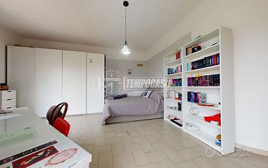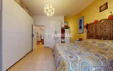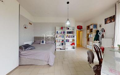 L'immobile sviluppa una superficie interna di circa 100 mq ed è caratterizzato da una distribuzione funzionale degli ambienti. L'ingresso si apre su un disimpegno centrale che divide in modo ordinato la zona giorno dalla zona notte. Sulla sinistra troviamo la zona giorno, composta da un ambiente unico luminoso caratterizzato da un imponente camino, con accesso ad un atrio privato di circa 8 mq di pertinenza esclusiva e portafinestra con uscita su un ampio balcone di circa 22 mq.