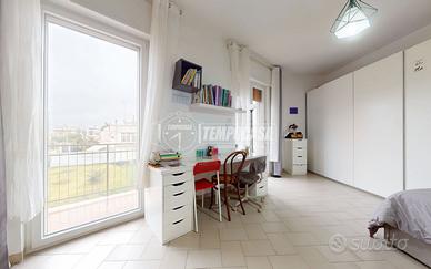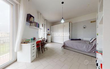 Sulla destra del disimpegno si sviluppa la zona notte, dove sono presenti una prima camera da letto utilizzabile anche come studio e una camera matrimoniale; entrambe dispongono di accesso diretto a un balcone privato di circa 10 mq. Proseguendo, in fondo al corridoio, è collocata la terza camera matrimoniale, anch'essa luminosa, con affaccio sullo stesso balcone della zona giorno. Accanto si trova il bagno con box doccia.