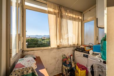 L'immobile gode di una tripla esposizione ed è composto da ingresso, salone doppio con uscita sul balcone con ampia veduta, 2 camere da letto finestrate, cucina abitabile con annessa veranda, servizio con vasca e ripostiglio.