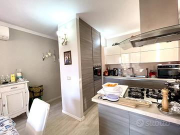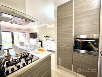 L'immobile, completamente ristrutturato, offre generose metrature e ambienti confortevoli e luminosi. Entrando, si viene accolti da un ampio soggiorno con cucina a vista e una vetrata che si affaccia sulla veranda coperta con giardino di proprietà.