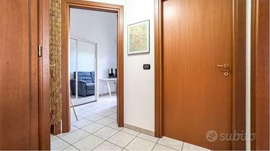 Il disimpegno conduce alla zona notte composta da due camere da letto, di cui una matrimoniale, anch'essa con accesso alla veranda, una singola, un comodo ripostiglio, e un bagno finestrato con box doccia.