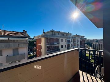 L'abitazione si apre su un ampio ingresso che conduce a un luminoso soggiorno con balcone e a un cucinotto anch'esso dotato di balcone. La zona notte comprende due camere da letto, di cui una con balcone privato, e un'ulteriore stanza attualmente adibita a lavanderia, facilmente trasformabile in terza camera o studio. Completano la proprietà due bagni e un garage di 18 mq situato al piano seminterrato.