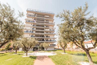 Pescara, via Italica n.101, nel Complesso residenziale di nuova costruzione "THE PLACE", appartamento trilocale sito al secondo piano con ascensore, così composto: ingresso, soggiorno con angolo cottura, due camere, due bagni, terrazzo con lavanderia e 2 balconi.