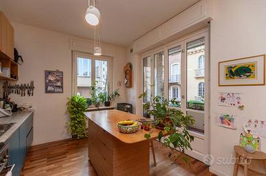 Rif: A31/25 (193412372) - Via Sommacampagna, in contesto residenziale signorile e silenzioso, a due passi dal Parco del Valentino e da Corso Moncalieri, proponiamo in affitto luminoso appartamento di recente ristrutturazione in edificio decoroso posto al primo piano senza ascensore. L'immobile libero sui tre lati, interamente parquettato, per una superficie di 130 mq viene consegnato parzialmente arredato ed è così composto: ingresso living su ampio salone con angolo cottura arredato (compresa lavastoviglie), disimpegno per angolo studio, tre camere, due bagni (entrambi finestrati) uno con vasca e l'altro con doccia (no lavatrice). Tripla esposizione con tre balconi, infissi con doppi vetri, porta blindata. All'interno del cortile posto auto riservato. Canone d'affitto € 1.600, 00. Spese condominiali mensili compreso posto auto € 200,00. Riscaldamento centralizzato con termovalvole (spese annue presunte € 1.800, 00). Per ricevere maggiori informazioni in merito all'arredo che verrà lasciato in dotazione è richiesto il contatto telefonico, grazie. - Classe: D - IPE: 60.29 kWh/mq anno