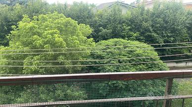 Ampio appartamento al secondo e ultimo piano di un condominio ben tenuto nelle parti comuni così composto: ampio ingresso, cucinotto, tinello separato con balcone ( eventualmente questa può diventare una grande cucina abitabile), grande soggiorno con balcone, due camere matrimoniali ampie, bagno finestrato con doccia e vasca e un comodo ripostiglio. Se si volesse adattare il tinello a soggiorno, quest'ultimo potrebbe essere utilizzato come terza camera. Di pertinenza all'appartamento due comode cantine e un box singolo. Di fronte al condominio 10 posti auto condominiali non assegnati. Il condominio è circondato da un'area verde comune. L'appartamento si presenta con finiture dell'epoca ma ben tenute, con serramenti in legno in doppio vetro e impianto di aria condizionata.