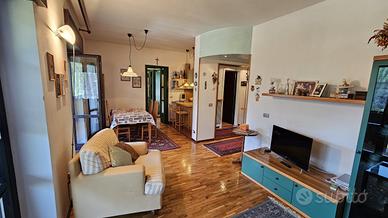 L'appartamento si presenta luminoso e ben distribuito, con ampie finestre che offrono splendide viste sui paesaggi circostanti. La disposizione interna comprende un soggiorno accogliente; una cucina separata completamente attrezzata dove preparare deliziosi piatti da condividere con amici e familiari; due camere da letto confortevoli adatte a garantire il massimo relax dopo una giornata all'aria aperta; due bagni funzionali progettati per comodità sia per i proprietari che per gli ospiti.