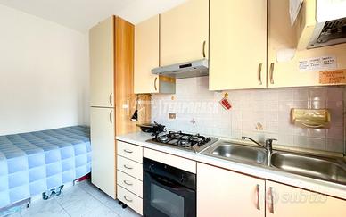 L'appartamento è composto da ingresso su zona giorno con cucina a vista, disimpegno notte, bagno cieco con doccia e areazione forzata, e spaziosa camera matrimoniale.