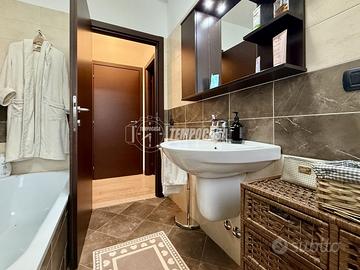 Dal disimpegno, attrezzato con una pratica armadiatura a muro, si accede all'ampia e confortevole camera da letto e al bagno finestrato, completo di vasca.