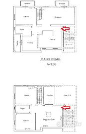 La metratura dell'appartamento è di 180 mq con una superficie di 110 mq al primo piano e 70 mq al secondo ed è così composto: