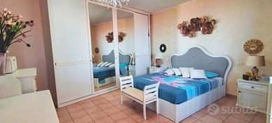 Attraverso il corridoio si arriva al primo bagno, completo di antibagno, vasca e proprio balcone e, successivamente, alla zona notte, composta da una camera matrimoniale dotata di balcone e proprio bagno privato con doccia, e da una seconda camera da letto doppia, anch'essa con il proprio balcone.
