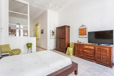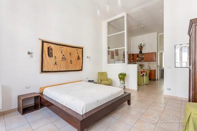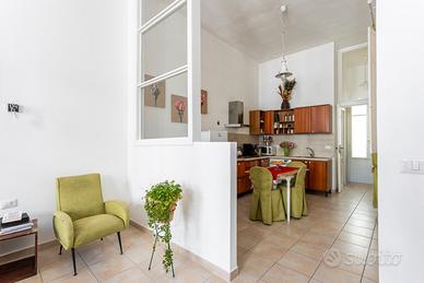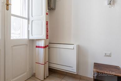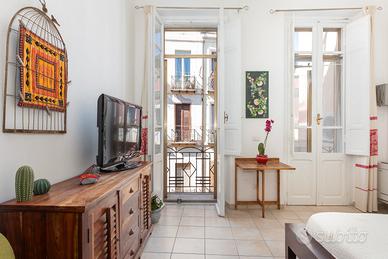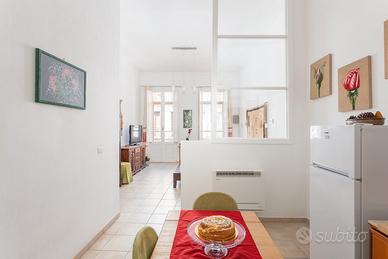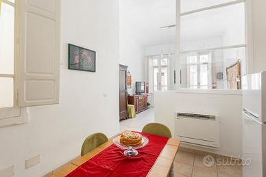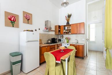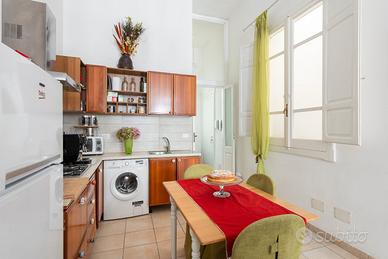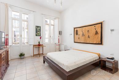 La spaziosa camera da letto vanta un balcone in ferro battuto del 1900, con affaccio sul Corso, che regala scorci unici sulla vita del quartiere storico. Completano la proprietà una cucina funzionale e completamente attrezzata e un bagno finestrato.