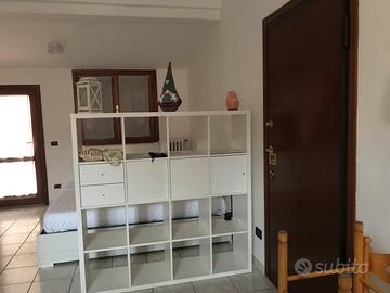 Disponibile a maggio ampio e luminoso monolocale,comodo disimpegno con zona lavanderia/guardaroba e grande terrazzo. Riscaldamento autonomo,climatizzazione,deposito bici,asciugatrice e parcheggio per residenti. Edificio a due unità immobiliari. Referenze richieste
