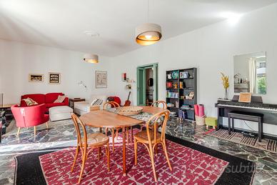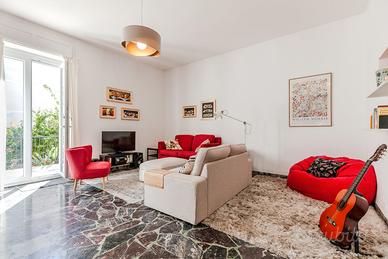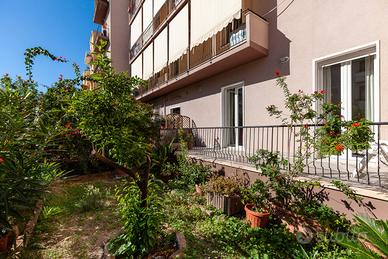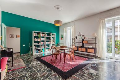 L'appartamento, situato al piano terra di un elegante stabile appena restaurato con ascensore, ti accoglie con ambienti ampi e luminosi. Dal soggiorno, vero cuore della casa, due grandi porte finestre che conducono sulla terrazza, preludio a ciò che rende questa dimora davvero speciale: il giardino perimetrale che abbraccia tre lati dell'abitazione.