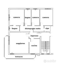 Dal disimpegno si accede alla zona notte dove troviamo due camere matrimoniali ampie e luminose, di cui una con bagno privato finestrato con doccia, una terza camera da letto singola ma di ottime dimensioni, spaziosa e finestrata, un comodo ripostiglio e infine troviamo un secondo bagno finestrato con doccia.