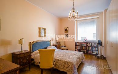 In stabile ben tenuto, proponiamo raffinato appartamento caratterizzato da spazi generosi, ottima distribuzione interna e doppia esposizione che garantisce grande luminosità durante tutto l'arco della giornata. L'ingresso si apre su un ampio corridoio con pavimentazione in marmo, impreziosito da libreria su misura a tutta altezza, ideale per creare una zona studio o lettura. Ambienti ariosi e ben illuminati. Ampio soggiorno con zona pranzo: Il cuore della casa è un grande salone con parquet a spina di pesce, suddiviso armoniosamente in: * zona relax con divani e poltrone * zona pranzo con tavolo dedicato Il soggiorno gode di due grandi porte-finestre con accesso al balcone, che assicurano luce naturale abbondante e ottima ventilazione. Presente anche impianto di aria condizionata. Le finiture classiche (specchiera dorata e dettagli d'epoca) conferiscono un'atmosfera elegante e senza tempo. La cucina, separata e ben organizzata, è dotata di: * piano cottura a gas * forno incassato * lavello in acciaio Soluzione pratica e funzionale, facilmente personalizzabile. Seconda zona pranzo / studio: Ulteriore ambiente luminoso con: * grande finestra * tavolo da pranzo Ideale come studio, sala da pranzo separata o terza camera a seconda delle esigenze. Balconi: L'immobile dispone di balconi accessibili dalle porte-finestre del soggiorno, con affaccio arioso su contesto urbano tranquillo. Zona notte * Camera matrimoniale ampia e luminosa, con parquet e arredi in stile. * Ambienti ben proporzionati e facilmente personalizzabili. Caratteristiche principali * Parquet in soggiorno * Marmo in ingresso e disimpegni * Ambienti ampi e ben distribuiti * Soffitti alti * Doppia esposizione * Ottima luminosità * Aria condizionata * Balconi Ideale per: Fa