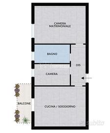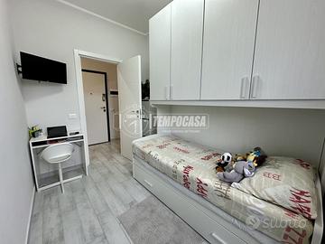 L'immobile è posto al primo piano in una palazzina di fine anni 70 ben tenuta. L'ingresso avviene nel disimpegno dove da un lato si trova il soggiorno con cucina a vista con affaccio sul balcone, dall'altro lato si accede alla cameretta, un'ampia camera matrimoniale e ad un bagno finestrato con doccia e sanitari sospesi.