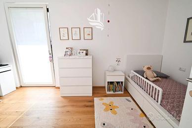 In vendita un trilocale costruito nel 2021, situato al piano terra e dotato di un ampio giardino privato di circa 300 m². L'immobile moderno si distingue per una distribuzione degli spazi ben studiata e per ambienti luminosi e accoglienti. È composto da una zona giorno con cucina integrata, due camere da letto, un bagno e un WC separato. Dalla terrazza si accede direttamente al grande giardino, ideale per momenti di relax, attività all'aperto e piacevoli occasioni conviviali.