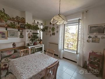 Vendesi in un tranquillo contesto verdeggiante, un luminoso appartamento sito al secondo piano di un edificio con giardino comune.