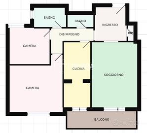 LUMINOSO TRILOCALE CON DOPPI SERVIZI IN CONTESTO R