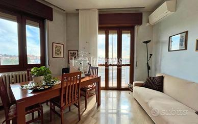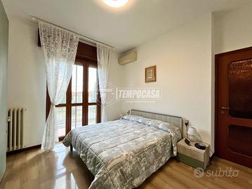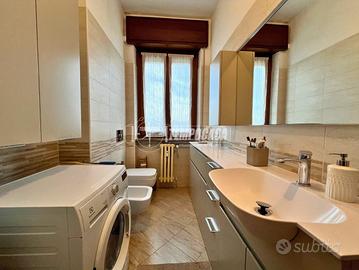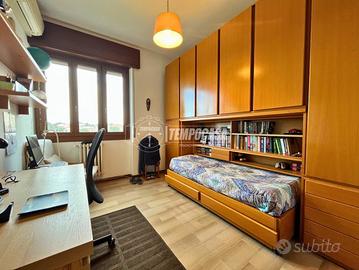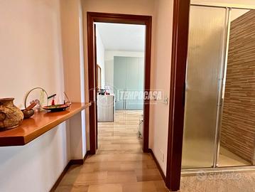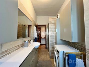 La zona notte invece comprende due camere da letto, una con sfogo sul secondo balcone, ed un bagno finestrato con sanitari sospesi ed ampia doccia con box doccia in cristallo.