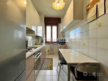 La zona giorno è formata da una cucina abitabile ed un luminoso soggiorno con doppia esposizione e sfogo esterno sul primo balcone.