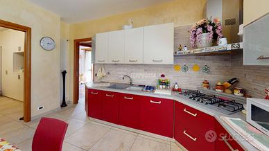 L'immobile si trova al piano terra di un piccolo contesto ed è composto da ingresso su ampia zona giorno con cucina a vista e sfogo su terrazzino privato, camera matrimoniale con sfogo su balcone che affaccia su giardino privato, bagno con vasca e box doccia con affaccio diretto sul medesimo balcone della camera matrimoniale e camera ragazzi.