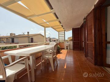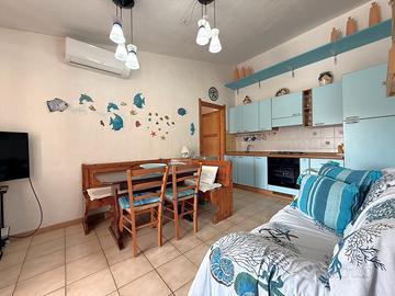 L'appartamento è composto da una spaziosa terrazza d'ingresso che ci conduce all'interno dell'abitazione dove trova spazio un soggiorno con angolo cottura, un bagno, una camera da letto matrimoniale e una cameretta.