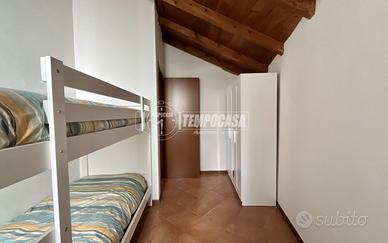 Un piccolo disimpegno conduce alla camera da letto finestrata e al bagno. Dal soggiorno, la scala a chiocciola accompagna al livello superiore dove troviamo un locale mansardato finestrato, uno spazio aggiuntivo versatile da personalizzare secondo le proprie esigenze: perfetto come studio, area hobby, stanza ospiti o ambiente dedicato al relax.