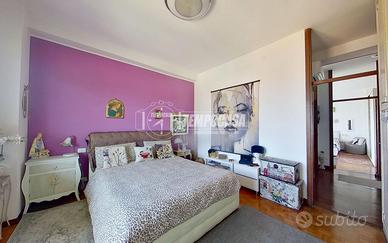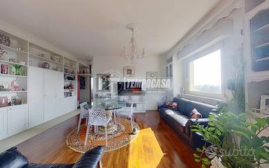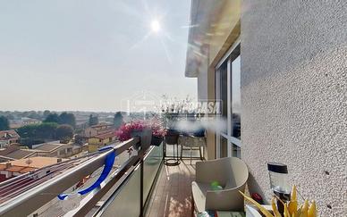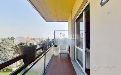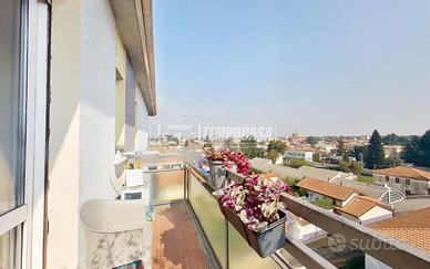 L'appartamento gode di una splendida esposizione a sud-est, che garantisce una costante luminosità naturale, e di una vista panoramica aperta sulla città di Meda e sui paesaggi circostanti. La posizione elevata e libera su più lati regala privacy e silenzio, pur rimanendo in un contesto centrale e ben collegato.