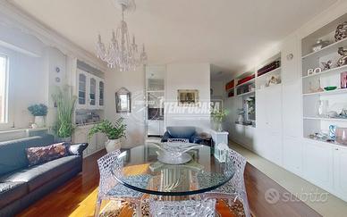 L'immobile è dotato di aria condizionata con pompa di calore, mentre il riscaldamento è centralizzato, con spese condominiali contenute. Completa la proprietà una cantina di circa 7 mq situata al sesto piano, perfetta come spazio accessorio.