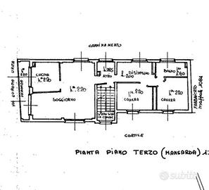 3 LOCALI al TERZO PIANO in contesto QUADRIFAMILIARE senza ascensore così composto:
